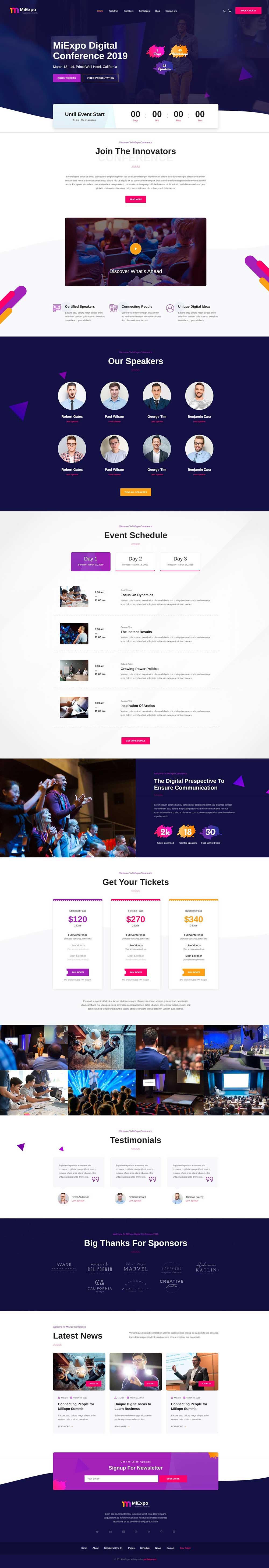 響應式多頁面樣式,PC+移動端自適應,大氣時尚的設計,該模板共包含20個頁面,純靜態HTML網頁源碼,代碼簡單友好易于修改,跨瀏覽器兼容性 ,很棒且富有創意的布局,良好的色彩組合,該網頁模板為此類企業創建成功網站提供了所需的所有必要頁面和功能,設計精美的商業性質HTML模板,各種會議和活動網站的HTML5模板。可以管理門票、演講者、日程、贊助商以及成功安排活動所需的任何內容。不僅是活動,您還可以管理與任何活動相關的任何網站,例如婚禮、時尚網站、代理機構、博客等。