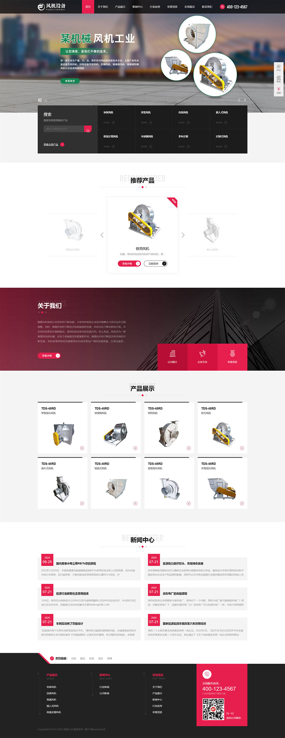 響應式機械風機設備網站模板自適應手機HTML網頁模板