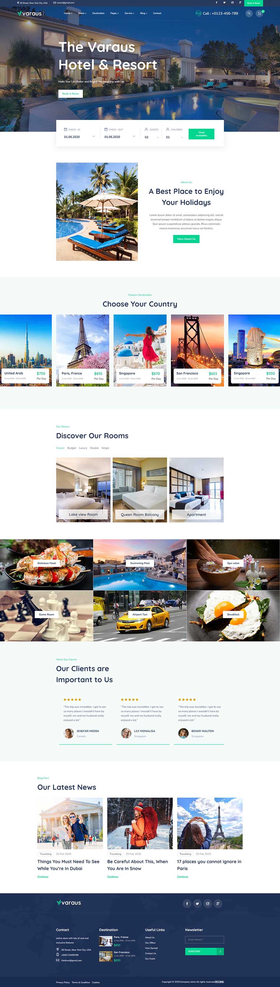 響應式星級旅游酒店網頁網站模板