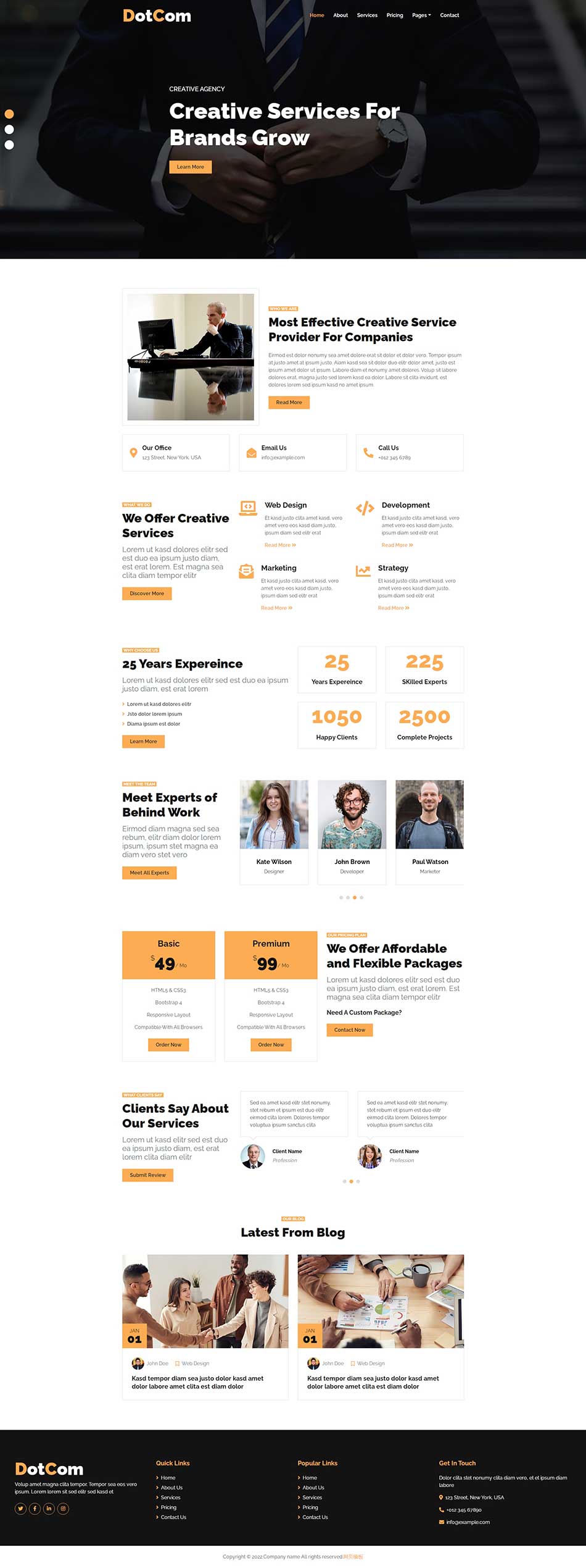 Bootstrap5框架,代碼簡單友好易于修改,跨瀏覽器兼容性 ,原生響應式自適應手機端,很棒且富有創意的布局,良好的色彩組合,該網頁模板為此類企業創建成功網站提供了所需的所有必要頁面和功能。