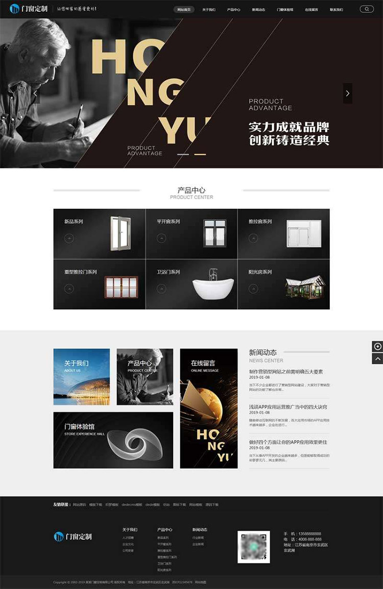 黑色五金建材門窗定制網站pbootcms模板帶手機端