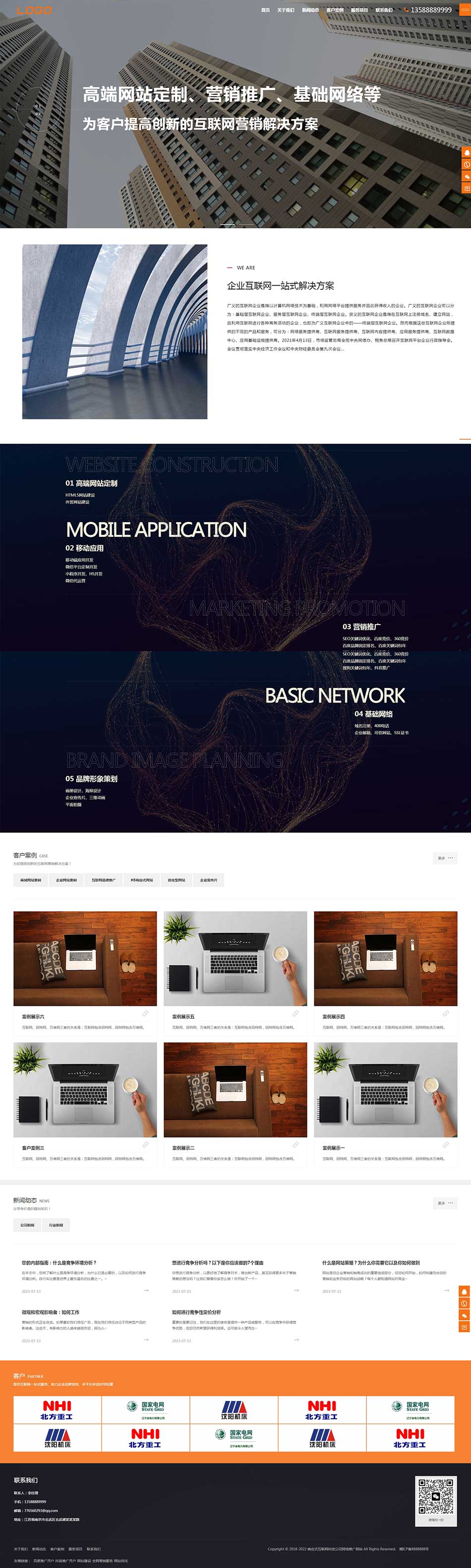 兼容電腦、手機等設備,同一個后臺,數據即時同步,簡單適用,附帶測試數據,安裝后和演示站一樣,該模板適用于各行業,只需把預設欄目和文字稍作修改即可作為其他類型的網站使用。